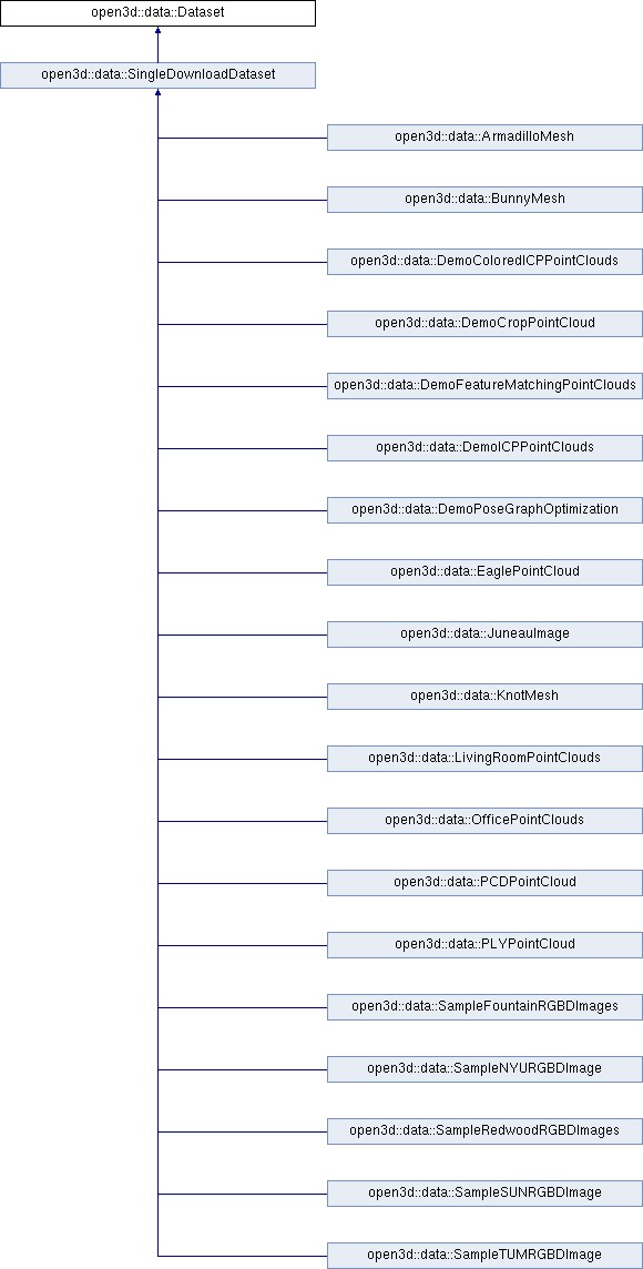 The Dataset classes in Open3D are designed for convenient access to "built-in" example and test data. You'll need internet access to use the dataset classes. The downloaded data will be stored in the Open3D's data root directory.