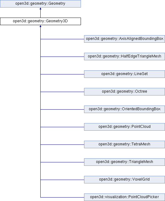 Public Member Functions inherited from open3d::geometry::Geometry | |