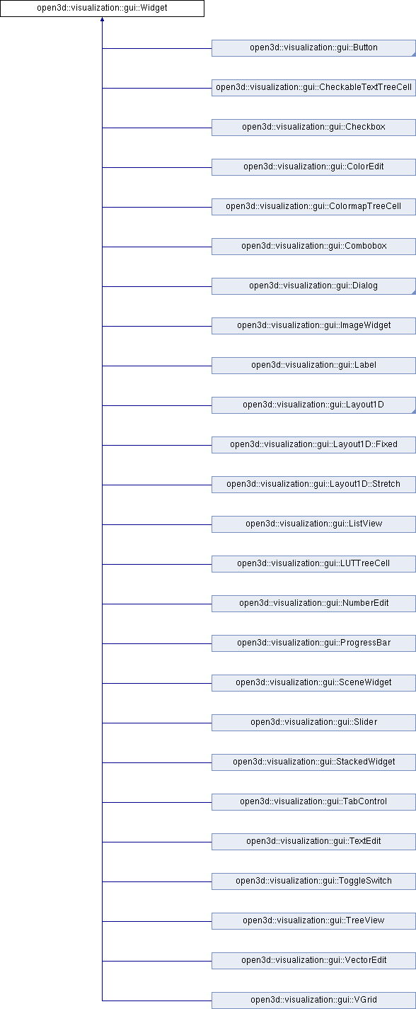 Reimplemented in open3d::visualization::gui::ScrollableVert, open3d::visualization::gui::SceneWidget, open3d::visualization::gui::CollapsableVert, open3d::visualization::gui::TreeView, open3d::visualization::gui::Combobox, open3d::visualization::gui::ImageWidget, open3d::visualization::gui::Button, open3d::visualization::gui::NumberEdit, open3d::visualization::gui::Slider, open3d::visualization::gui::ListView, open3d::visualization::gui::Label, open3d::visualization::gui::TextEdit, open3d::visualization::gui::VectorEdit, open3d::visualization::gui::StackedWidget, open3d::visualization::gui::ToggleSwitch, open3d::visualization::gui::ColorEdit, open3d::visualization::gui::TabControl, open3d::visualization::gui::Checkbox, open3d::visualization::gui::Dialog, and open3d::visualization::gui::ProgressBar.