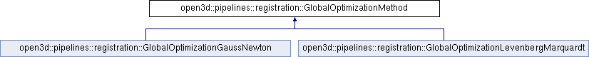 Implemented in open3d::pipelines::registration::GlobalOptimizationLevenbergMarquardt, and open3d::pipelines::registration::GlobalOptimizationGaussNewton.