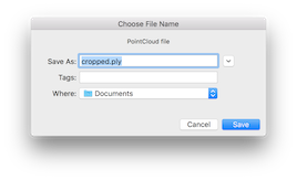Note that the selected area is dark shaded. To keep the selected area and discard the rest, press C. A dialog box appears, which can be used to save the cropped geometry. The cropping result is shown after saving.